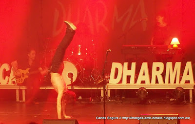 A hores d’ara, només em manca la falta d’interaccions de la gent. No puc entendre com no està tothom aixecat de les cadires per poder ballar i em sorprèn que els aplaudiments siguin per tancar cançons i no, per acompanyar-les. Em treu dels meus pensaments l’arribada dels bastoners Manrússia Van del Pal, que han pujat a l’escenari per oferir-nos, conjuntament amb la Dharma, “L’àngel de la dansa”, en una dansa que sembla cobrar vida i ritme a cada cop.
